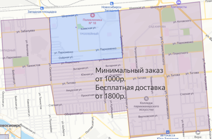 Если при оформлении указано "Адрес вне зоны доставки", значит ваш адрес не входит в нашу карту районов доставки, но вы можете заказать через сервис доставки "Яндекс.Еда".